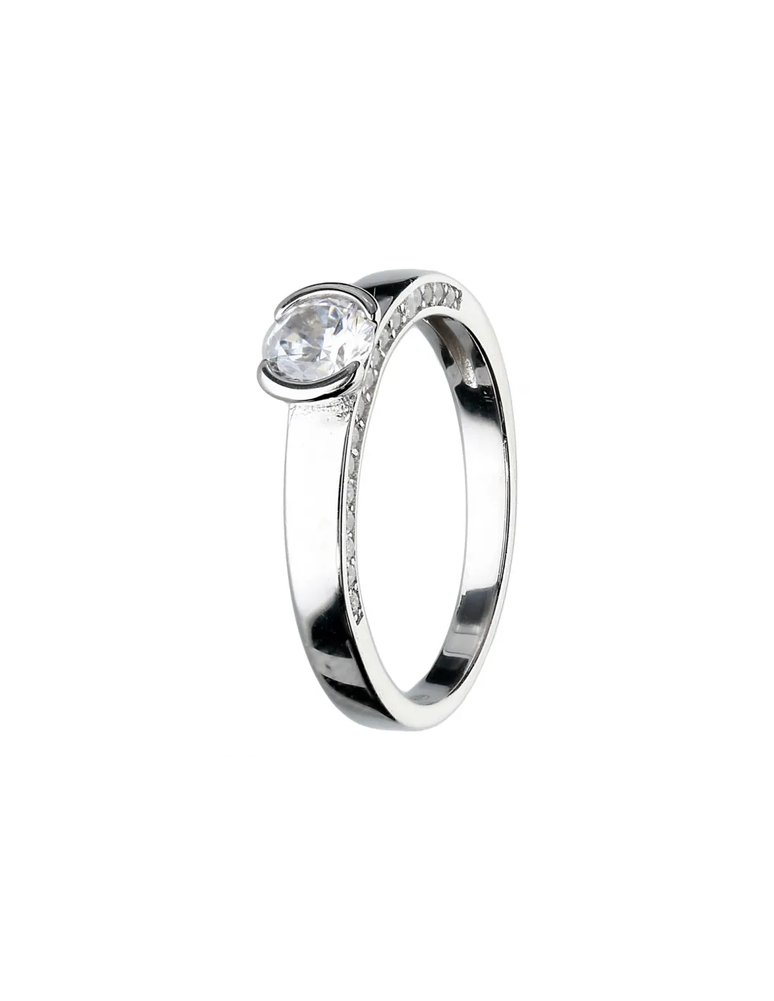 Srebrny klasyczny pierścionek z fantazyjnie osadzoną cyrkonią