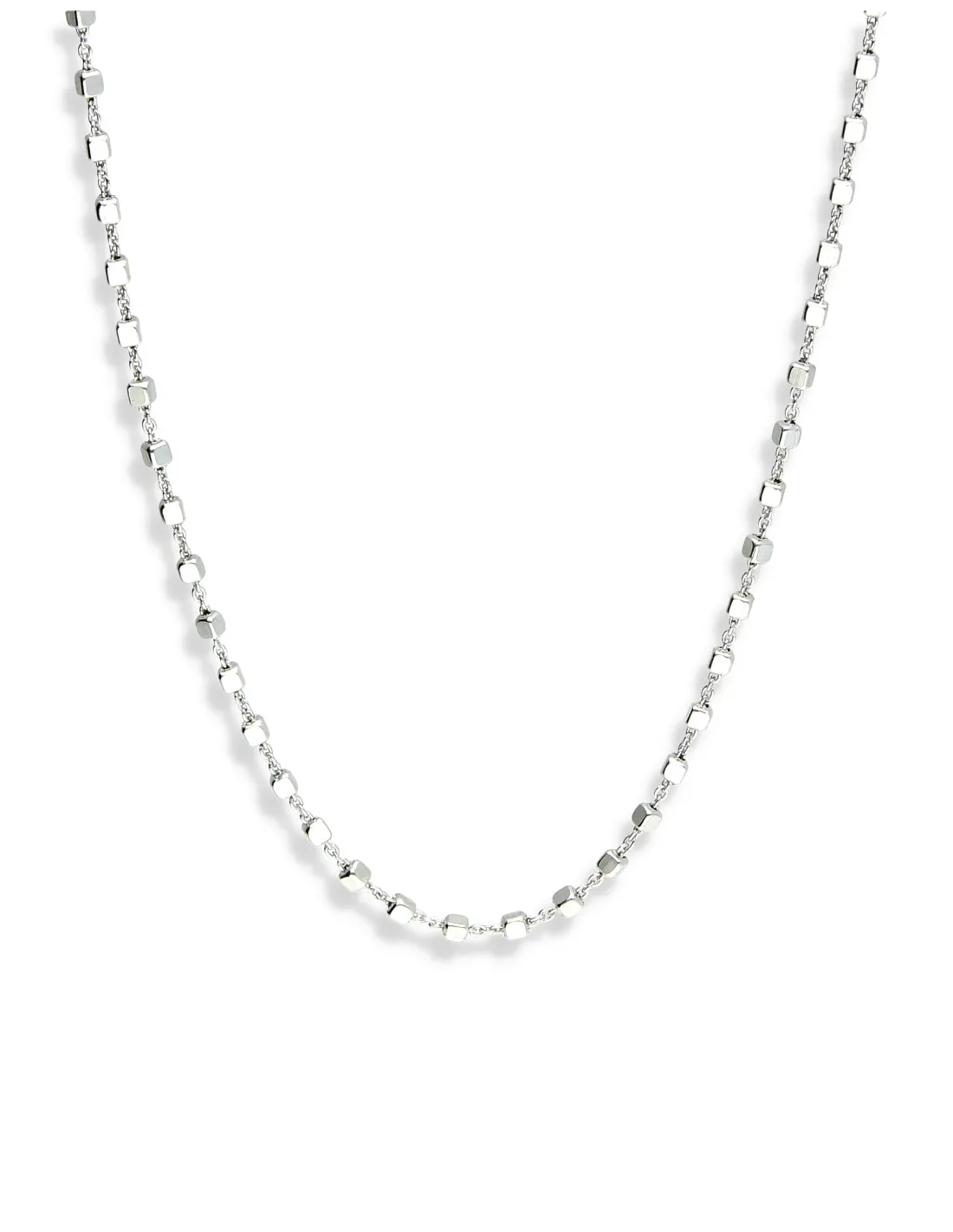 Srebrny łańcuszek o długości 45cm; model ozdobny z elementami łączonej kostki; łańcuszki ozdobne nie wymagają dekorowania zawieszkami, same stanowią element ozdobny