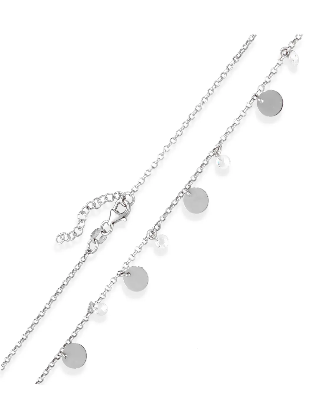 Srebrna bransoletka typu celebrytka - wieloelementowa. Zawieszka okrągła, wysadzana cyrkoniami z motywem drzewa. Bransoletka wzbogacona została o kolorowe sześcienne cyrkonie. Przedłużka umożliwia odpowiednie dopasowanie długości. Do kompletu N1310MP