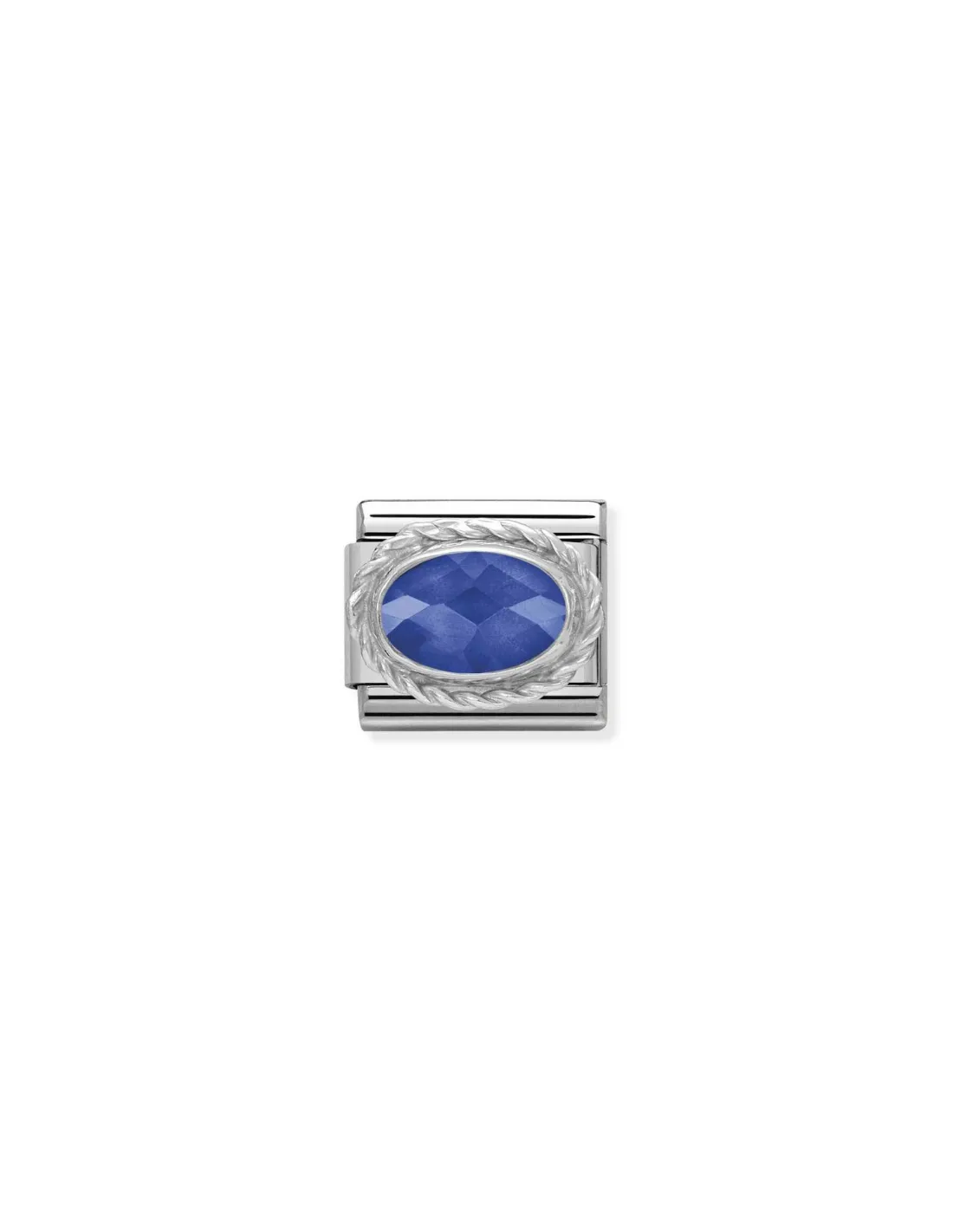 LINK (ogniwo) KOBALTOWA CYRKONIA oplatana warkoczem ze srebra pr. 925, baza stal szlachetna.