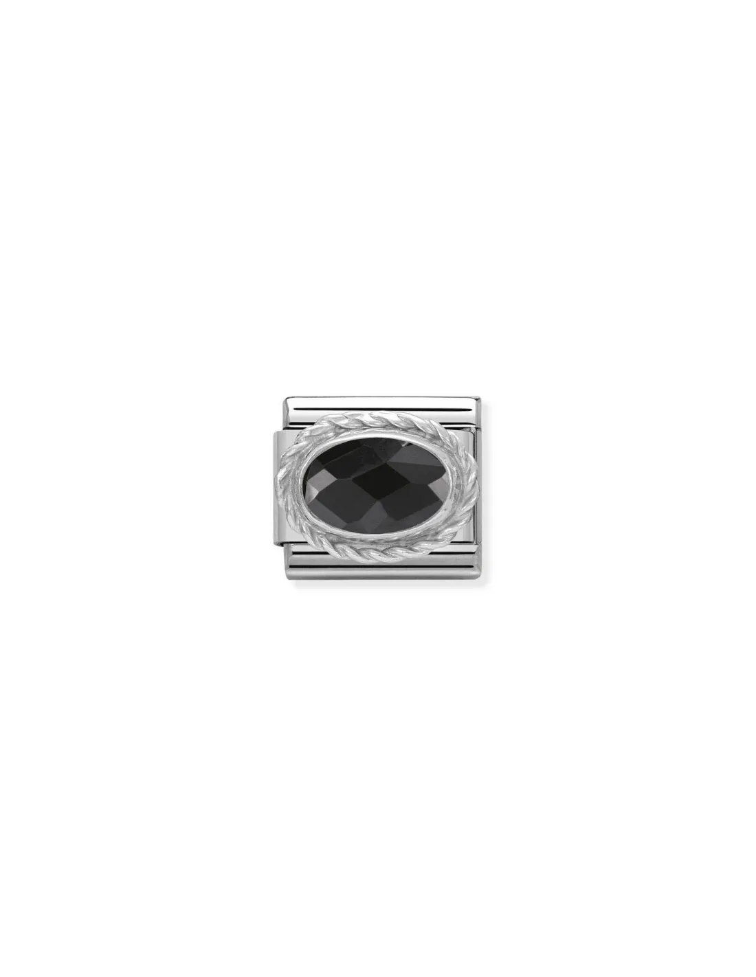 LINK (ogniwo) CZARNA CYRKONIA oplatana warkoczem ze srebra pr. 925, baza stal szlachetna.