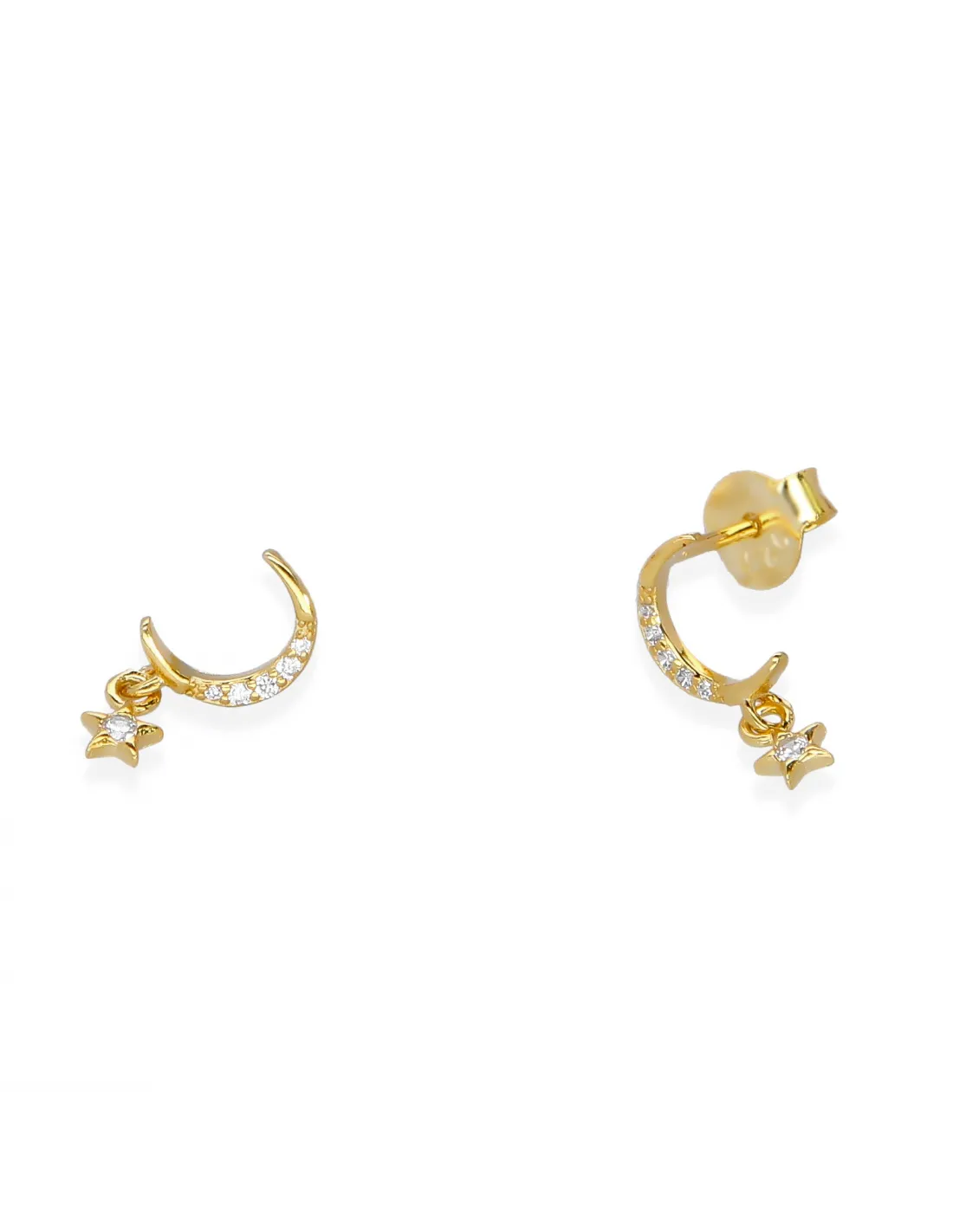 Pozłacane kolczyki wykonane z najwyższej jakości srebra próby 925. Wysadzane są cyrkoniami, które charakteryzują się pięknym blaskiem. Kolczyki przedstawiają księżyc
