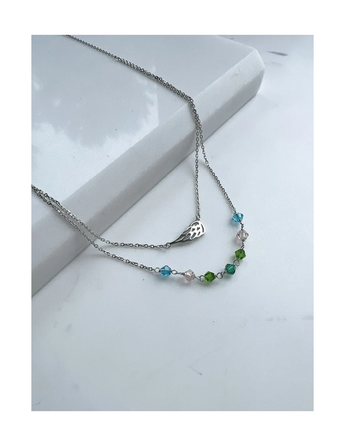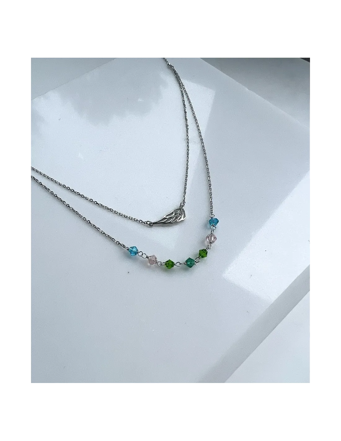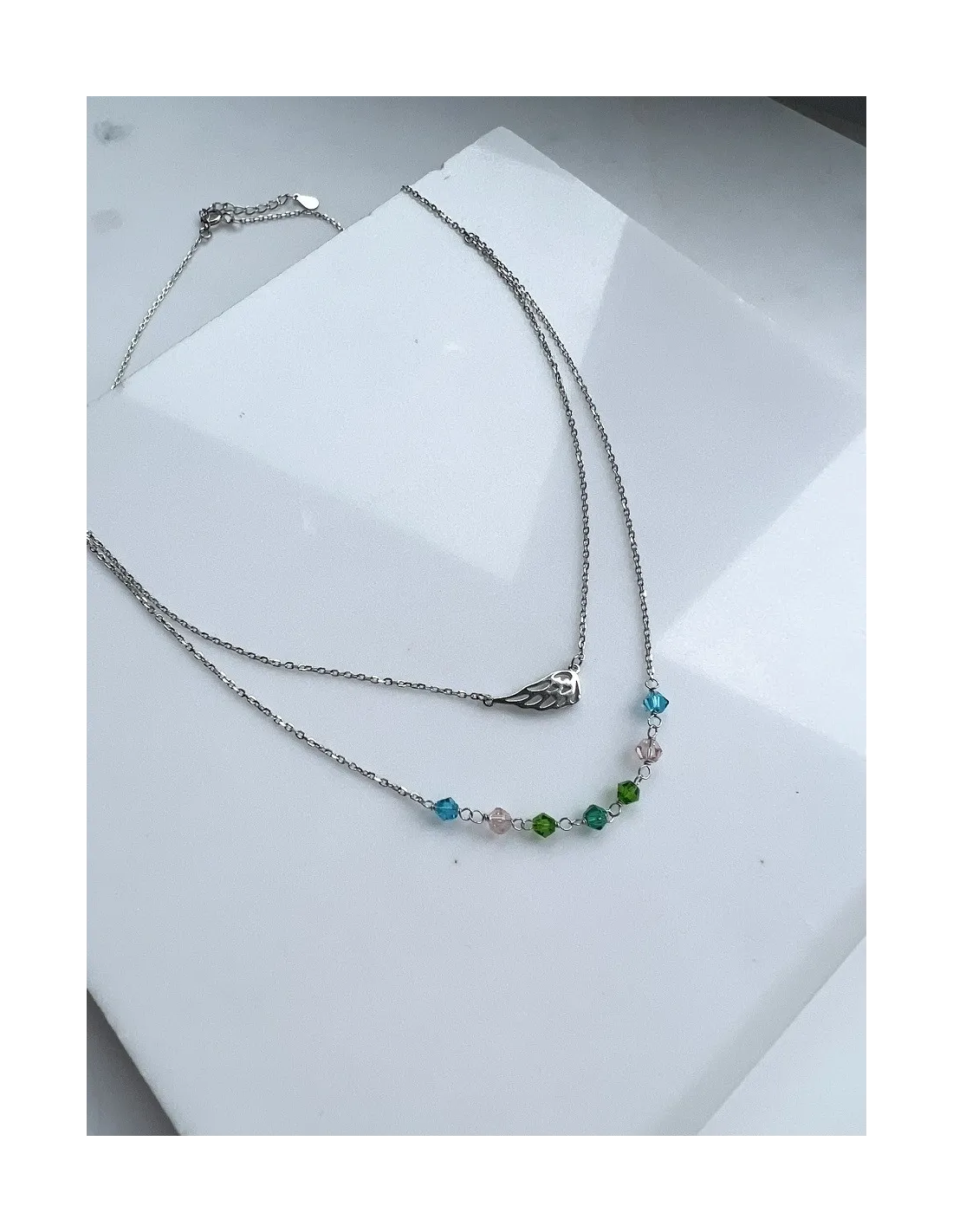 Srebrny naszyjnik pozłacany typu celebrytka; gwiazdka z kolorowymi zawieszkami; elementy ozdobne nie przesuwają się po łańcuszku; łańcuszek typu ankier z przedłużką