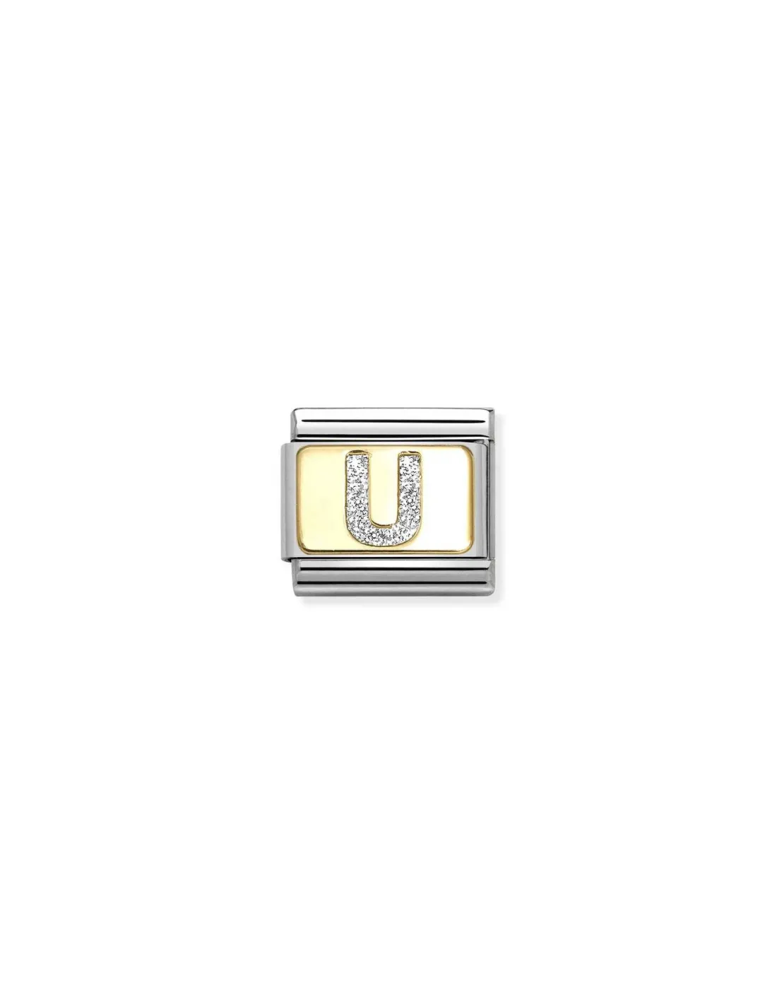 LINK (ogniwo) wykonane z 18K złota, literka "J" z brokatem Gold