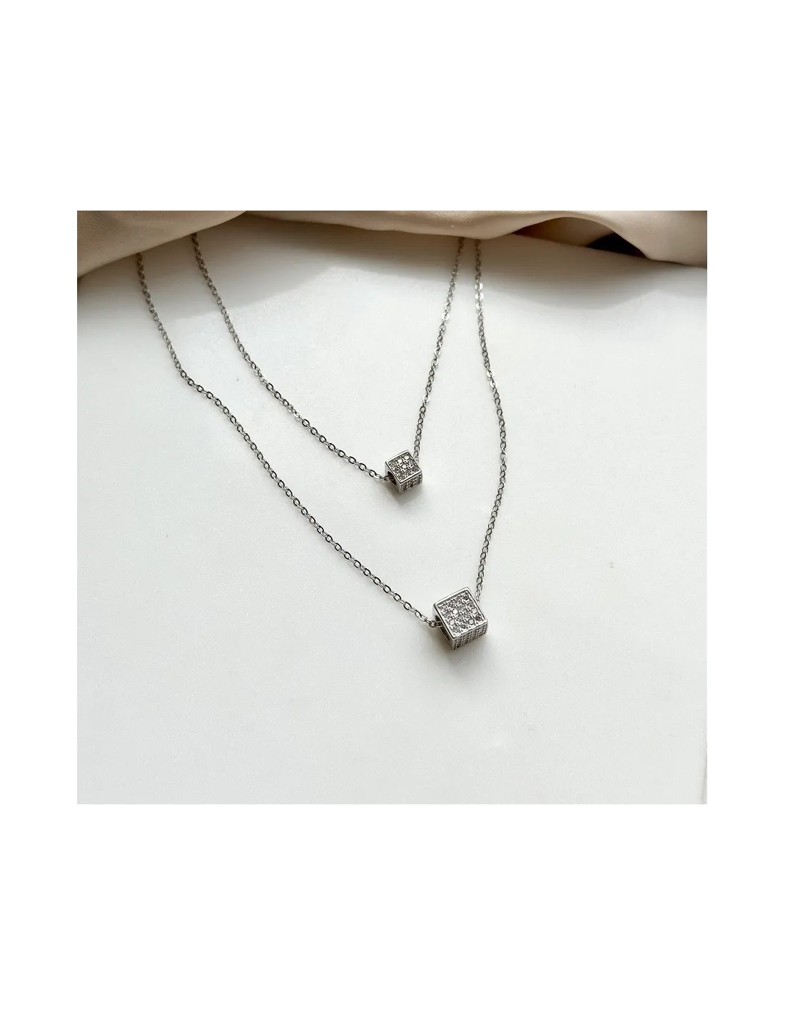 Srebrny naszyjnik typu celebrytka. Wykonany ze srebra próby 925. Delikatny łańcuszek typu ankier. Podwójny naszyjnik wzbogacony regulacją, dzięki czemu możemy manipulować jego długością.
