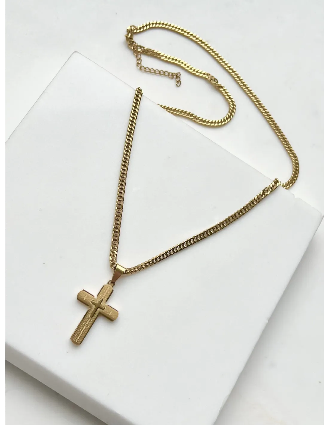 Naszyjnik Męski STAL CHIRURGICZNA Krzyż Złoty
