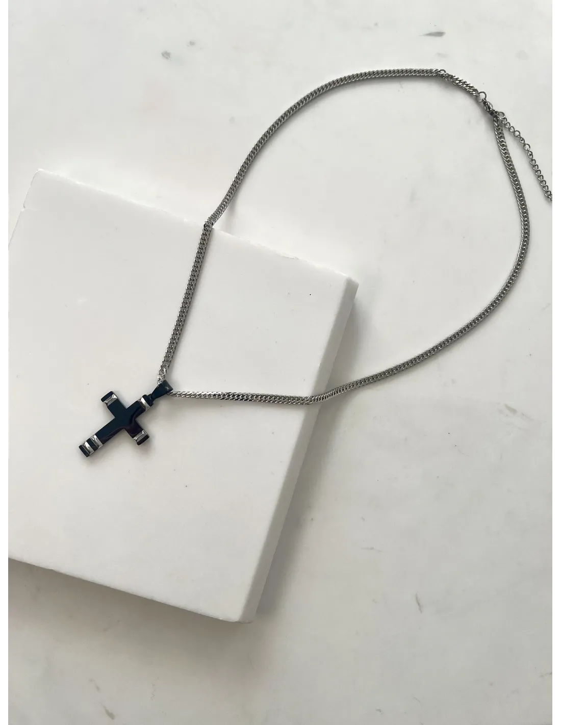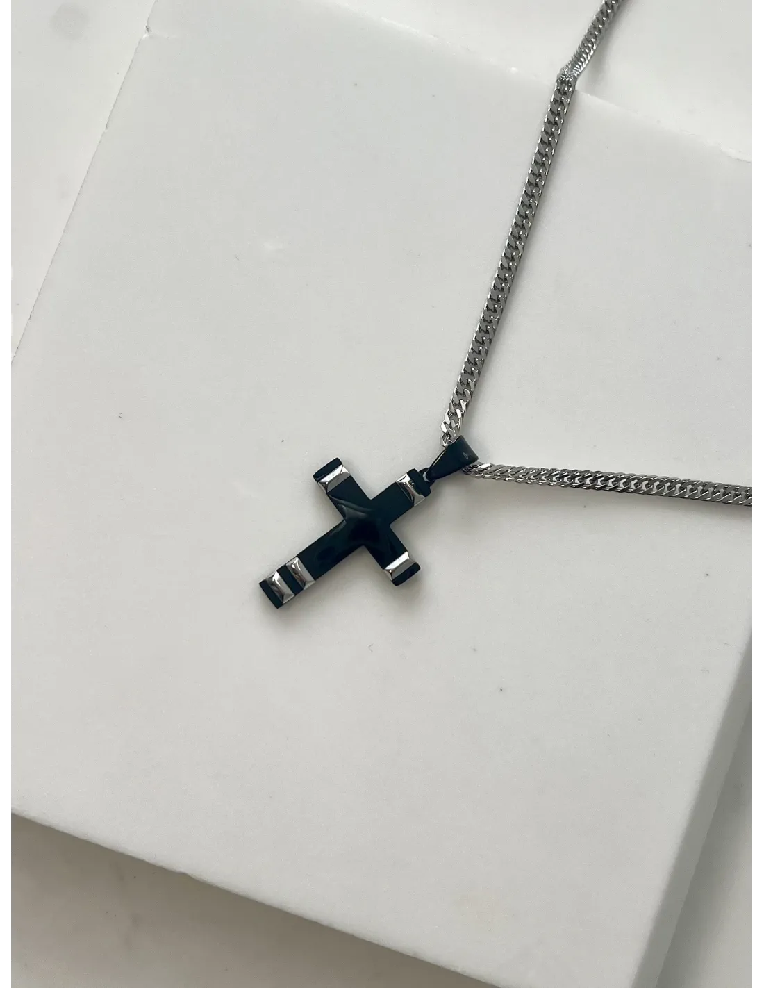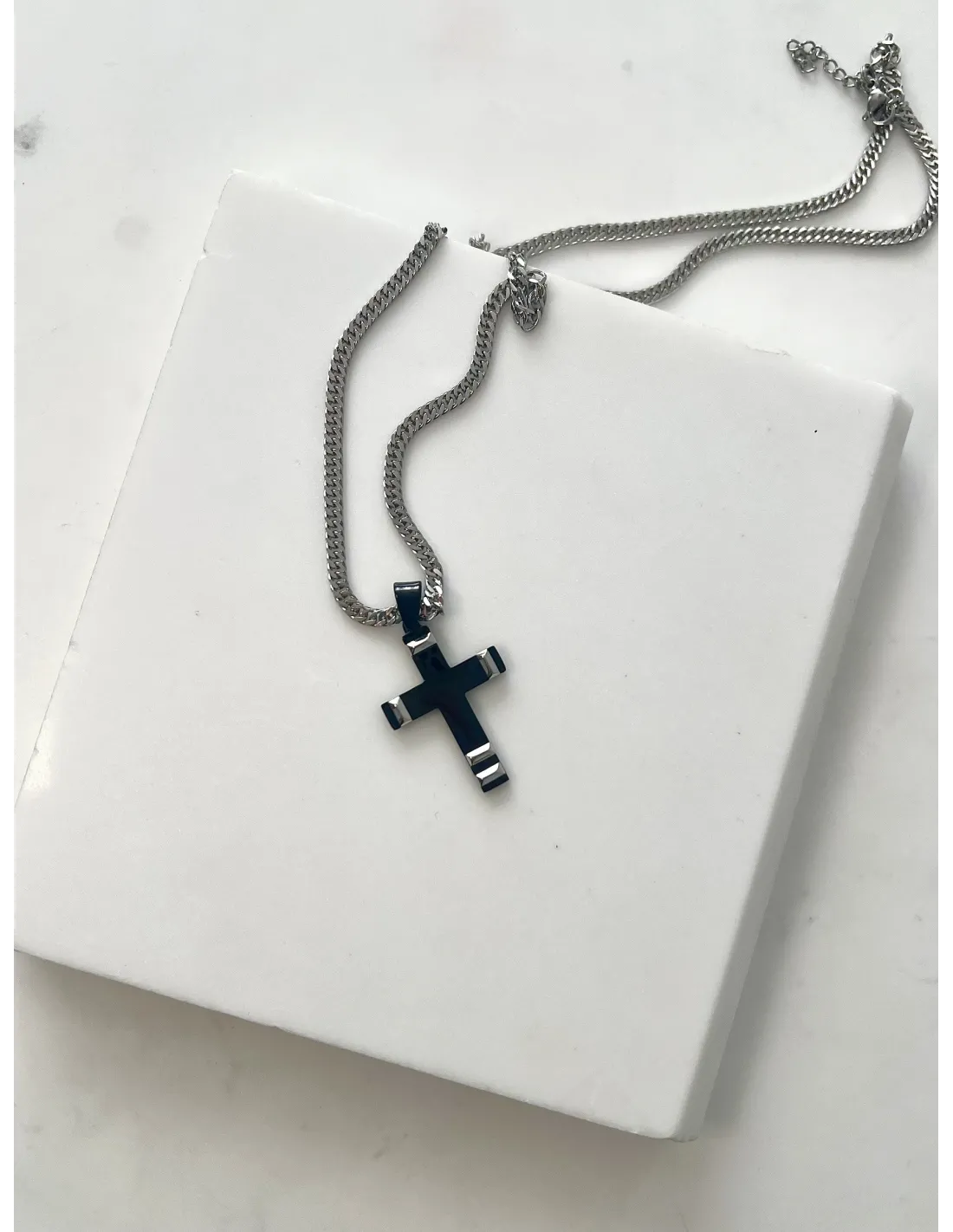 Naszyjnik męski z najnowszej kolekcji stali chirurgicznej. Element ozdobny - złoty krzyż (ruchomy).